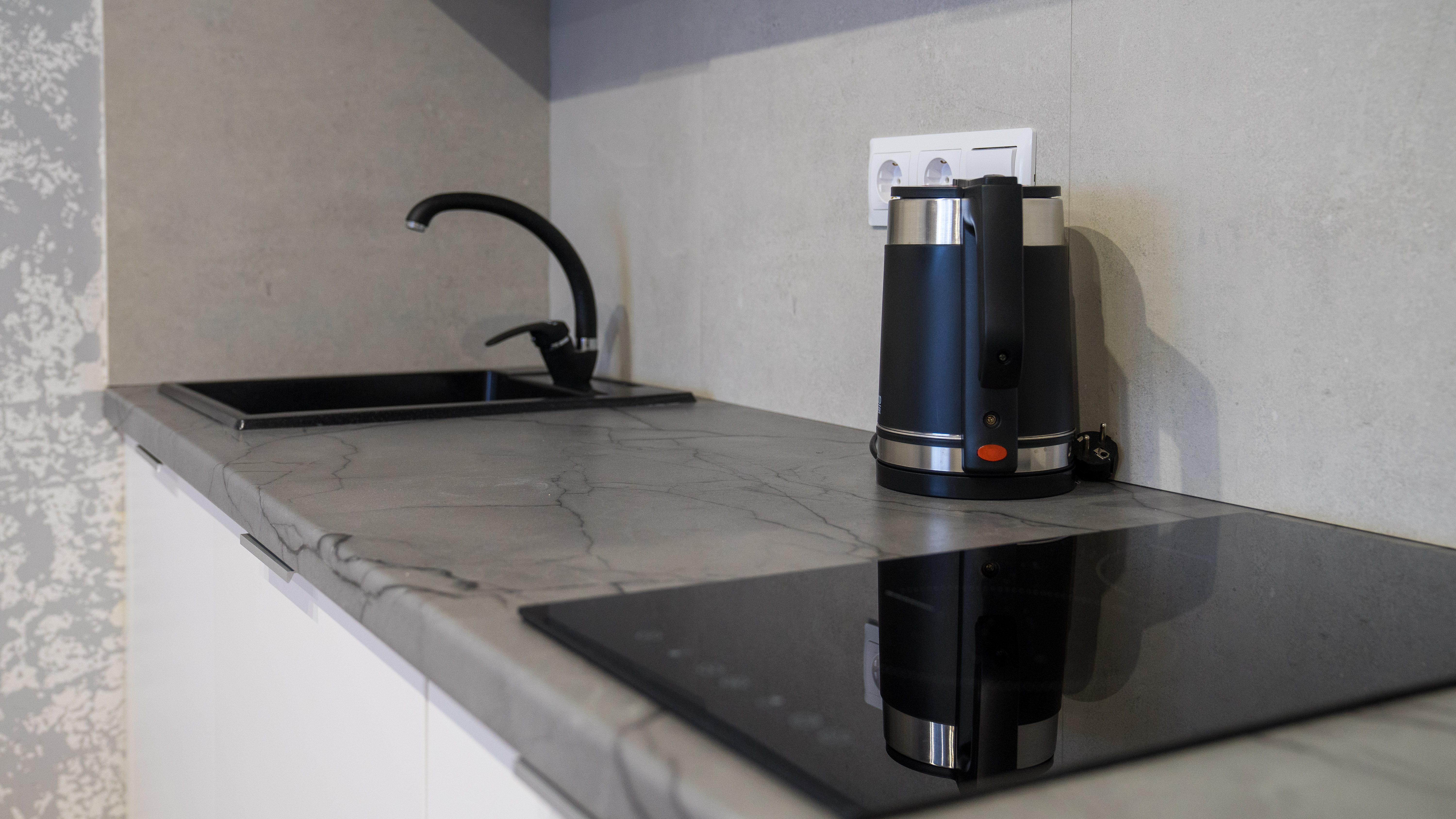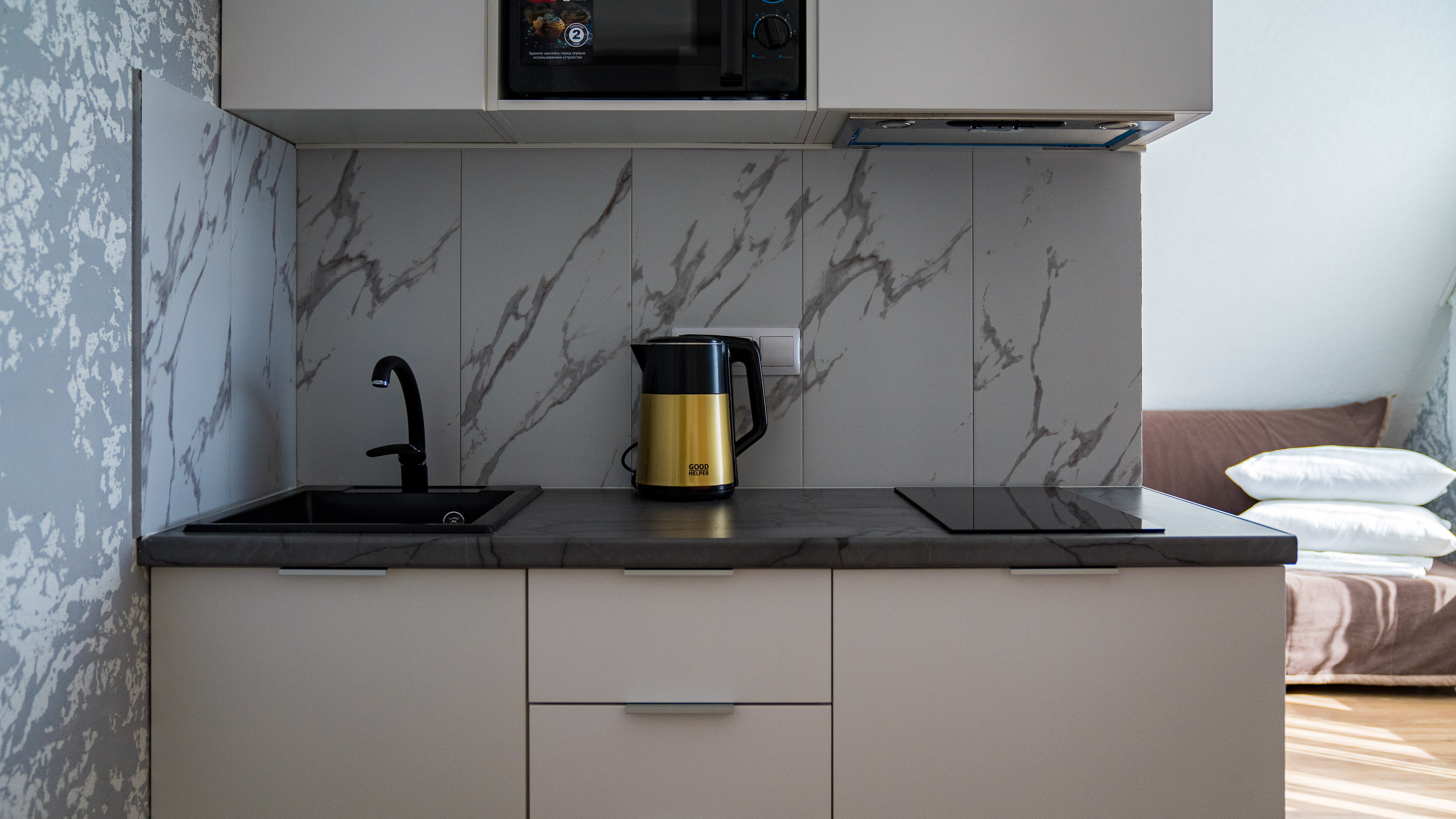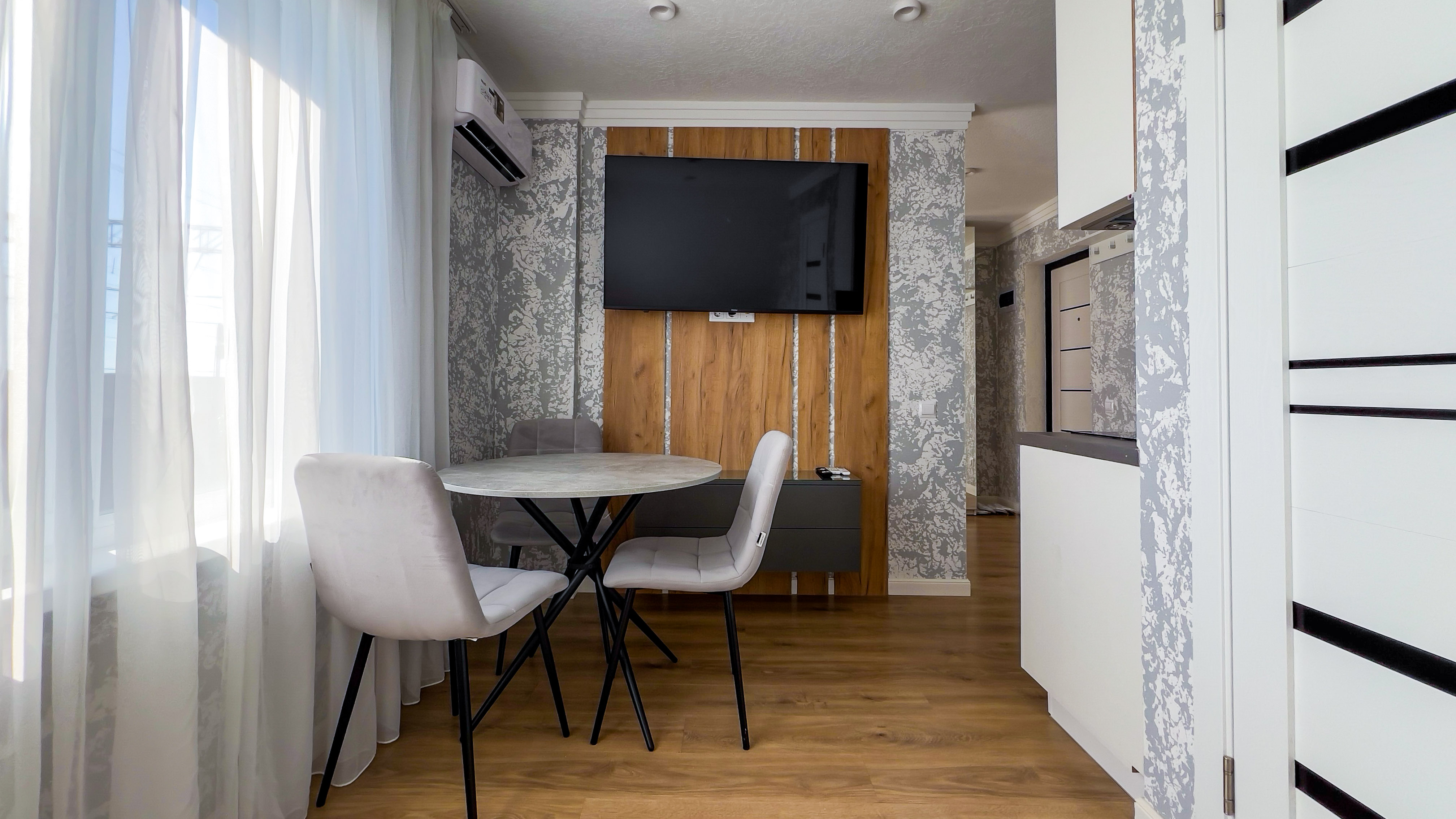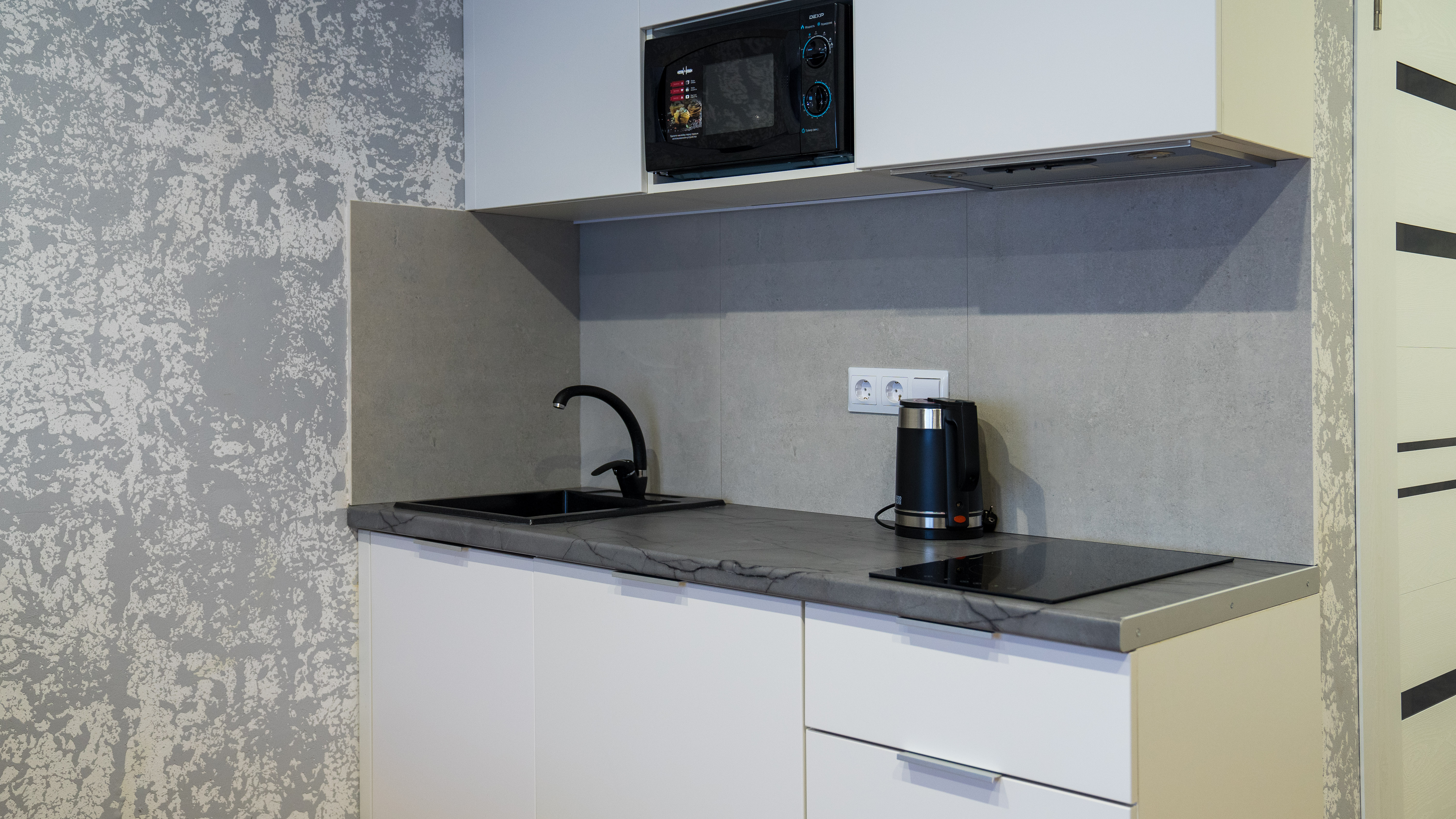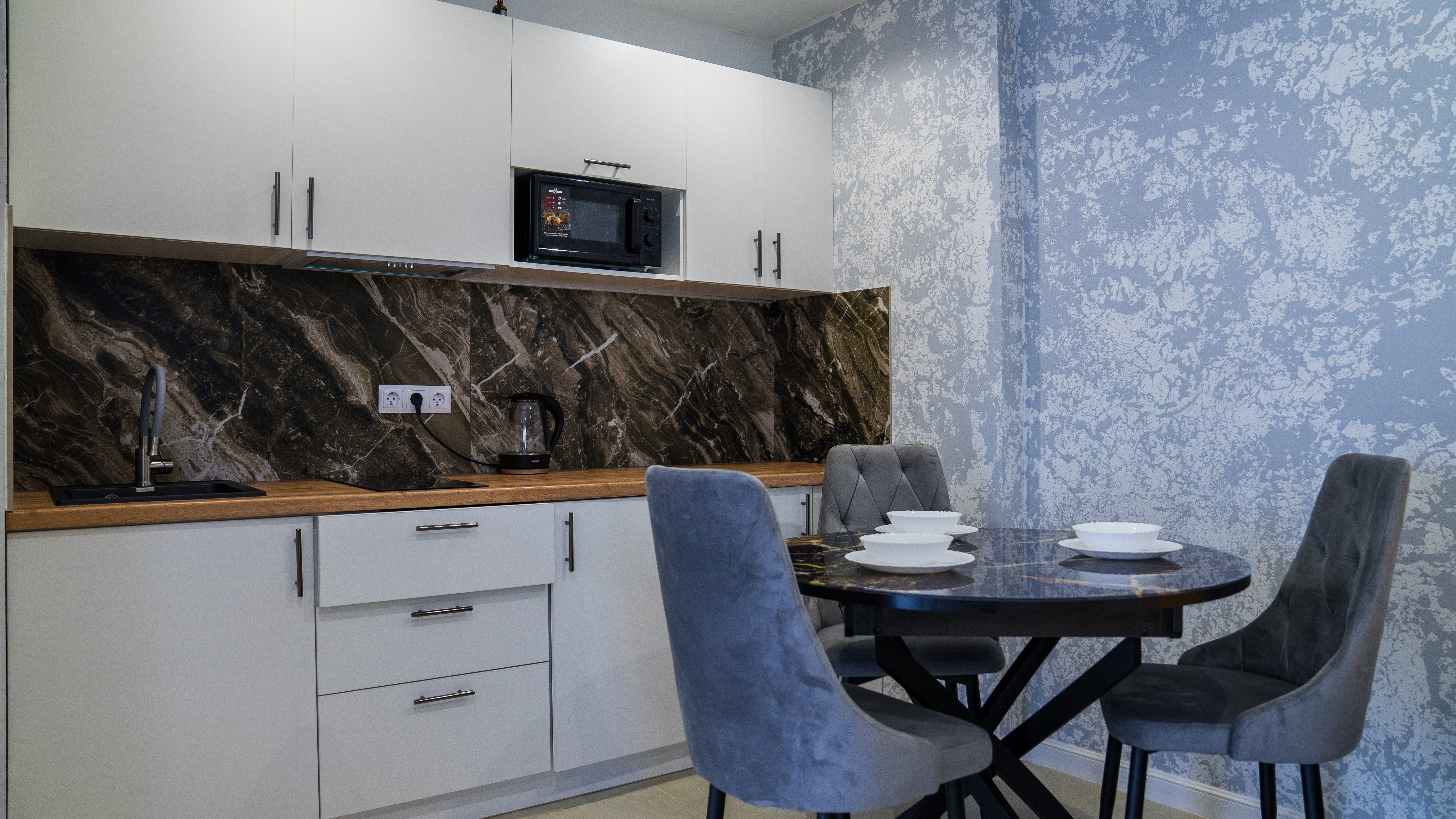 - Оборудование: кондиционер, микроволновая печь, мини-холодильник, набор посуды, плита электрическая, телевизор ЖК, чайный набор посуды, электрочайник