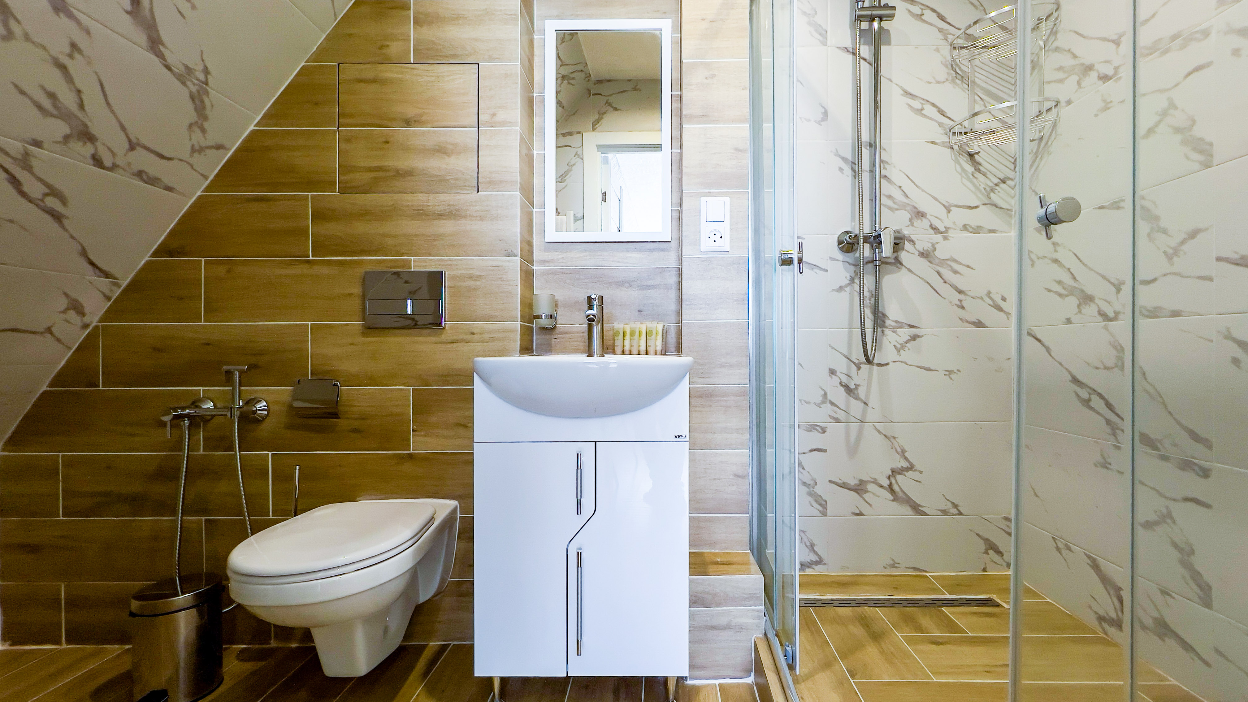 - Санузел: с душем (поддон), тапочки, туалетные принадлежности, фен